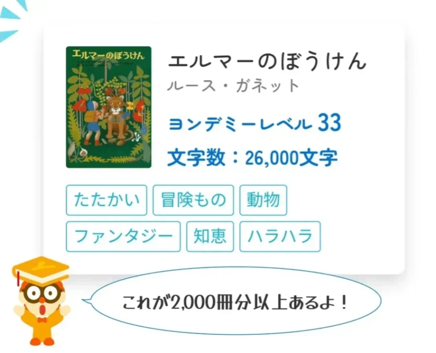 - ヨンデミーのスタッフたちがすべての本に目を通し、文の長さや語彙の難しさを正確に判定しています